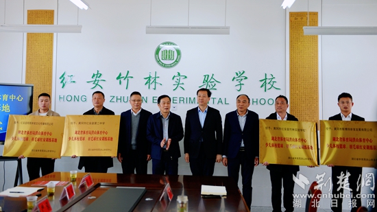 湖北省體育局洪山體育中心少兒體校與紅安縣文化和旅游局、紅安縣教育局簽訂合作協(xié)議。湖北省體育局洪山體育中心主任馮金榮分別向紅安縣第二中學(xué)、紅安縣竹林實(shí)驗(yàn)學(xué)校、紅安縣明易體育文化傳播有限公司、黃岡市斯博特體育發(fā)展有限公司授予“湖北省體育局洪山體育中心少兒體育籃球、羽毛球訓(xùn)練基地”牌匾。