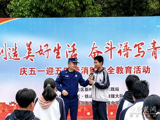 在消防小知識有獎競答環(huán)節(jié),學(xué)生們踴躍回答問題,紛紛展示學(xué)到的消防知識,現(xiàn)場氣氛一片火熱,為了增強(qiáng)互動效果,宣傳員利用消防宣傳車播放了生動有趣的消防安全知識短片,并講解了滅火器、逃生面罩等消防器材及產(chǎn)品的使用方法和注意事項,吸引了學(xué)生們觀看和學(xué)習(xí)。