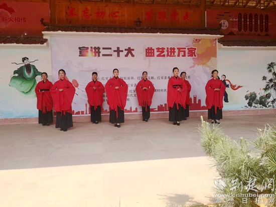 荊楚網(湖北日報網)訊(通訊員毛紅平)“走啊,去文化禮堂看戲喲!紅安縣曲藝家協(xié)會主席鄧永松,自編自唱湖北大鼓宣講黨的二十大精神真好看喲?!?月14日一大早,紅安縣高橋鎮(zhèn)高樓村黨支部書記吳勝祥就在朋友圈里向村民發(fā)出了通知。