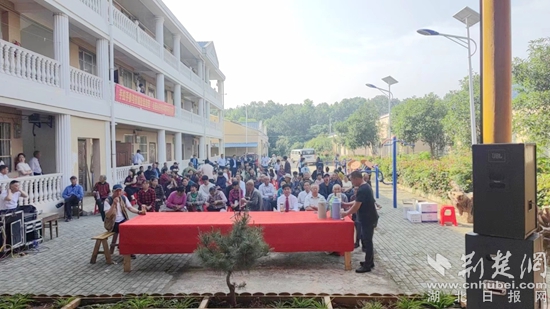 上午八點過后,高樓村文化禮堂前,坐滿了前來觀看的群眾。由紅安縣文藝志愿者、曲藝家協(xié)會選送的戲曲節(jié)目正式開演,讓村民在家門口就能享受免費的文化大餐。
