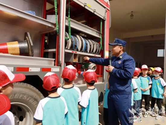 “車上都是我們常用的救援工具,別看它們體積小,作用可大著呢!”在消防員細致地講解下,孩子們認識了各類消防車輛和裝備器材,了解它們在滅火救援任務中的用途。