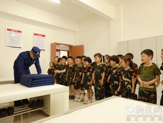 “這個被子像豆腐塊兒?!毕绬T的宿舍干凈整潔,看到疊放得有棱有角的被褥,和擺放整齊的書籍、物品,小朋友們不由得,一邊鼓掌一邊驚嘆。消防員邊講解,邊展示疊被子的過程,讓孩子們親眼見證,“豆腐塊兒”是如何誕生的。孩子們好奇地睜大雙眼,很快一床散落的被子,完成了大變身,現(xiàn)場師生拍手叫好。