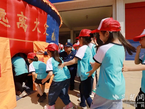 隨后,消防員邀請小朋友們試穿心儀已久的消防叔叔“同款服裝”,并利用充氣式的“逃生帳篷”,模擬真實的火災現(xiàn)場。在消防員的指導下,孩子們一個個捂住口鼻,扶著墻壁彎腰鉆進帳篷里,開始了一場“沉浸式”火場逃生。