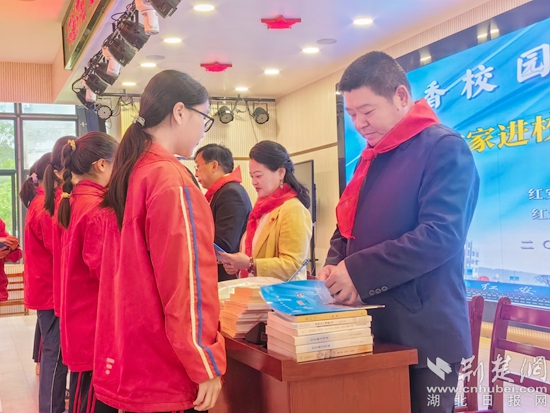 活動伊始,少先隊員為作家佩戴紅領(lǐng)巾,贈送《子曰》詩刊。紅安縣作協(xié)主席倪先勝為永河小學的12名學生頒發(fā)“小作家”證書,同時贈送《紅安文學》及其它作品。