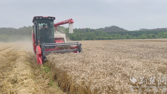 荊楚網(wǎng)(湖北日報(bào)網(wǎng))訊(通訊員王煥鑫 余常家)麥浪滾滾,機(jī)器轟鳴。近日,在永佳河鎮(zhèn)尾斗山村的田間地頭,市場主體、種糧大戶們忙著組織農(nóng)機(jī)收割小麥,呈現(xiàn)出一派繁忙的豐收景象。