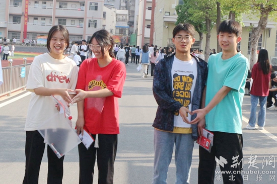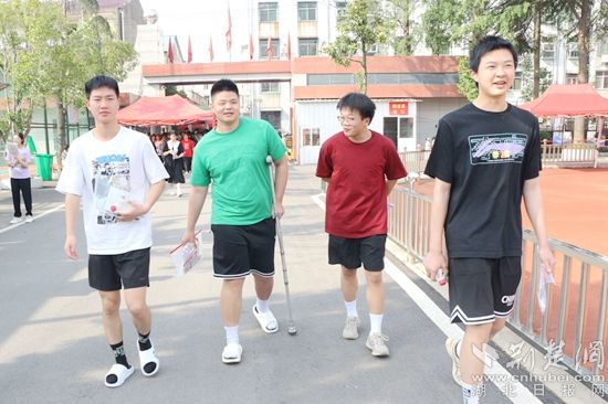 他們當(dāng)中有的考生身穿紅色衣服,預(yù)??荚嚧蠼荩辉谶M(jìn)考場(chǎng)前,有的考生圍在一起,擺出愛(ài)心的手勢(shì),露出自信的笑容,高呼“戰(zhàn)勝高考,我能,我一定能”的口號(hào)響徹云霄;有的考生雖然在考前腿部或頭部受傷,但他們沒(méi)有顯示畏懼的神態(tài),反而展現(xiàn)了更堅(jiān)強(qiáng)的毅力與一往無(wú)前的勇氣,面帶笑容,堅(jiān)定地邁入考場(chǎng)……一幕幕從容的畫(huà)面詮釋著勇毅前行,一張張自信的笑臉展示著超越自我。