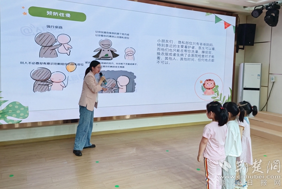 活動中,杜航用一些發(fā)生在身邊鮮活、真實的典型事例,通俗易懂、深入淺出地講解了《未成年人保護法》中“家庭保護”“學校保護”“社會保護”和“司法保護”的相關內容。用幼兒容易理解的小視頻和故事進行防性侵、防拐騙、防溺水等方面的安全教育,機智的問答互動,讓孩子們在歡聲笑語中學到了知識,懂得了如何保護自己。