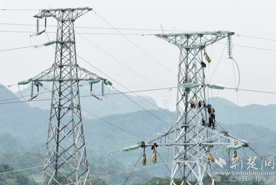 荊楚網(wǎng)(湖北日?qǐng)?bào)網(wǎng))訊(通訊員 周燁任 曹浩)6月12日,在黃石陽新縣富陽公路和黃陽公路沿途110千伏宋竹線輸電線路改造現(xiàn)場(chǎng),電力工人站在高高的鐵塔上,頭頂驕陽展放導(dǎo)線,全力迎戰(zhàn)夏季用電高峰。