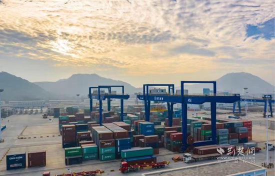 每天,大量的集裝箱從港口進(jìn)出,是富池鎮(zhèn)經(jīng)濟(jì)發(fā)展的“晴雨表”。 通訊員 黃玉 供圖