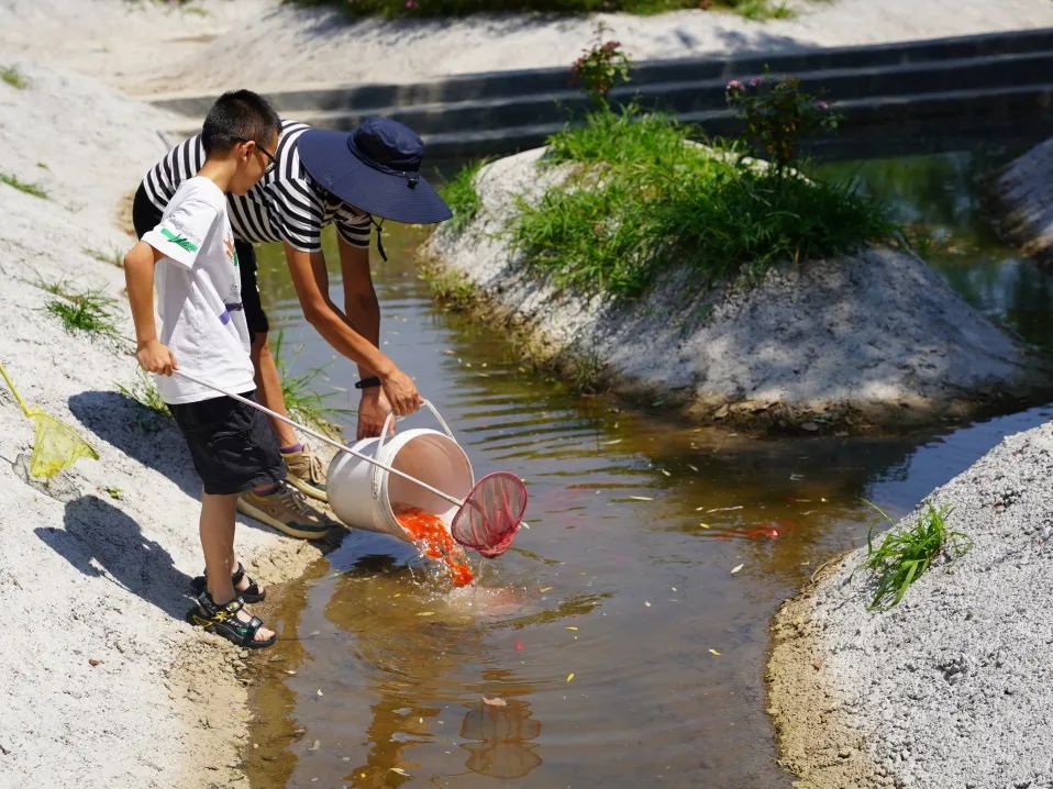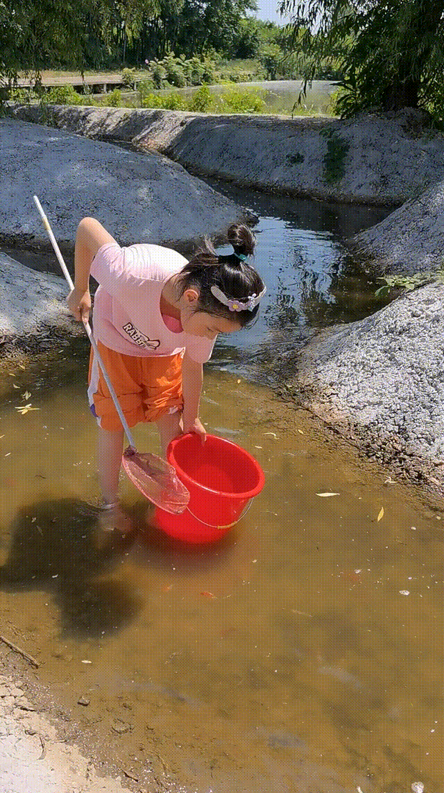 帶著小朋友在水里摸魚(yú)