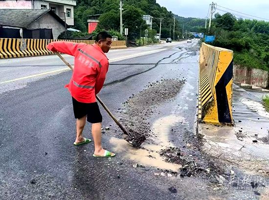 面對突發(fā)險情,咸安區(qū)公路管理局立即啟動應急預案,全體養(yǎng)護人員冒雨上路搶通保暢。