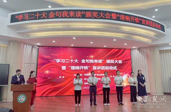 荊楚網(wǎng)(湖北日報網(wǎng))訊(記者 呂鑒蕾 通訊員 張燦華 胡娜)7月13日上午,黃石開發(fā)區(qū)·鐵山區(qū)“學(xué)習(xí)二十大 金句我來讀”頒獎大會暨“理響開鐵”宣講團啟動式在黃金山第五小學(xué)舉行。
