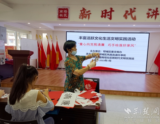荊楚網(wǎng)(湖北日報網(wǎng))訊(通訊員 丁元中)一刀一剪揚正氣,一毫一厘頌清風。7月12日上午,鄂城區(qū)鳳凰街道南塔社區(qū)聯(lián)合鄂州市婦聯(lián)、鄂城區(qū)婦聯(lián)、鳳凰街道婦聯(lián)開展了“童心向黨剪清廉,巧手繪蓮好家風”剪紙活動,將廉政素材與傳統(tǒng)剪紙相結(jié)合,用民俗藝術(shù)展現(xiàn)清廉之風。