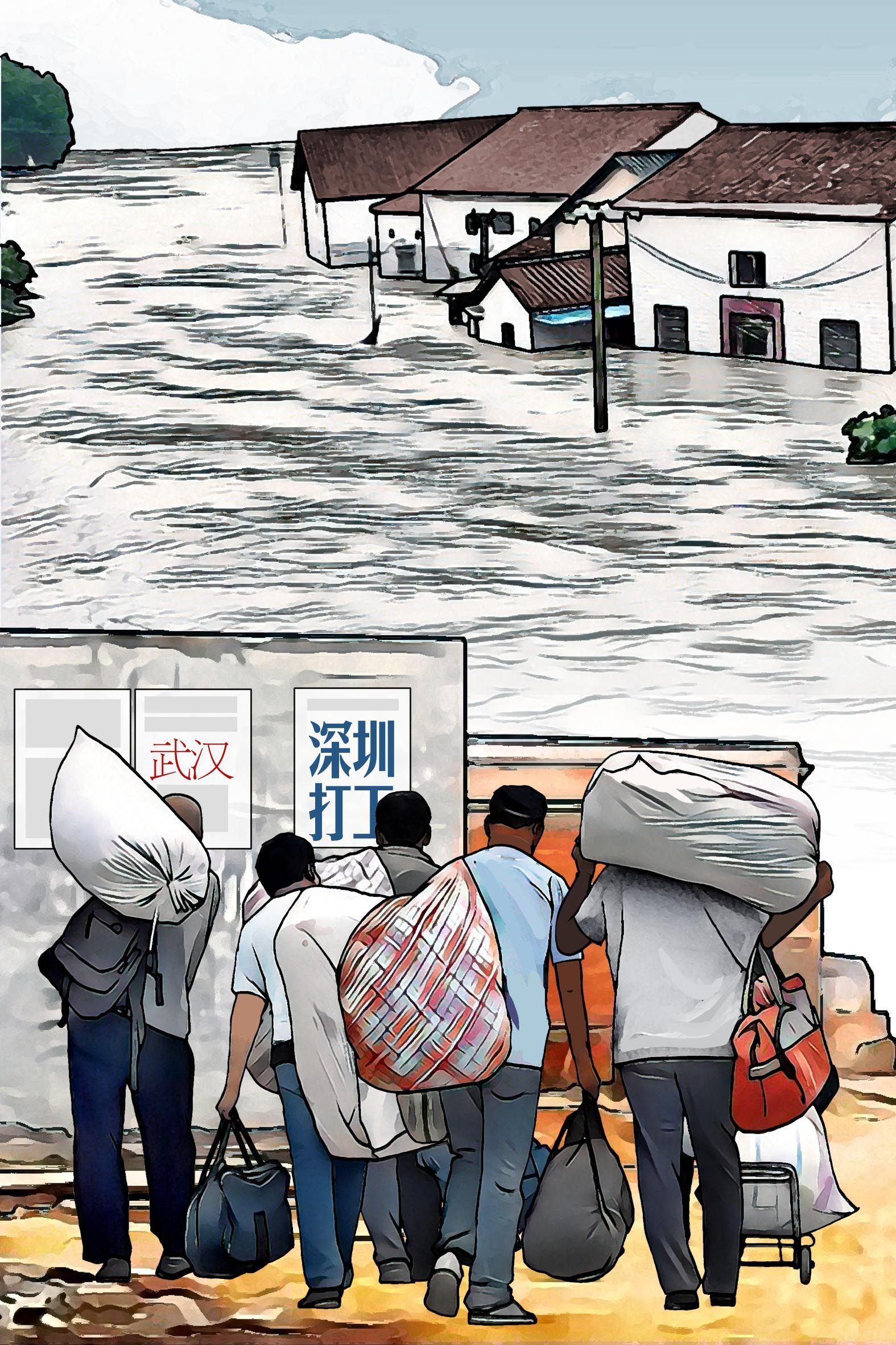 1996年至1998年,三年水患,許多村民顆粒無收、血本無歸。連年歉收后,鄉(xiāng)親們逐漸對種田失去信心。不少村民賣掉耕牛,閉門鎖戶,前往廣州、深圳、武漢等地打工。