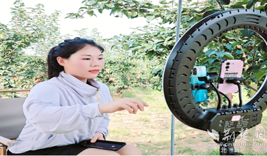 阡陌農(nóng)場(chǎng)的一大片翠冠梨壓彎了樹(shù)枝,農(nóng)場(chǎng)主擔(dān)心貨賣(mài)不出去。王七億、吳朋花來(lái)到農(nóng)場(chǎng)后,架起機(jī)械,開(kāi)始拍攝,然后開(kāi)始直播帶貨:“各位粉絲,我現(xiàn)在是在主席故里—紅安縣高橋鎮(zhèn)阡陌農(nóng)場(chǎng),這里有一大批新鮮的翠冠梨等待著大家嘗鮮,歡迎大家線上選購(gòu)。”