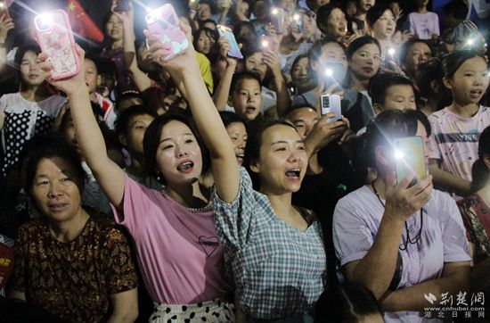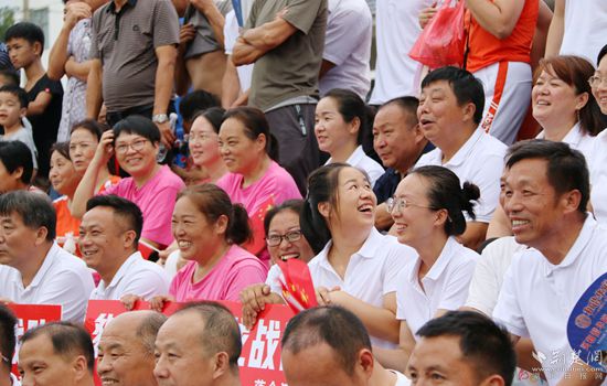 傍晚,華燈初上,匡河小學籃球場熱鬧非凡,球場周圍群眾揮舞著國旗,喜笑顏開,加油聲、喝彩聲一浪高過一浪。