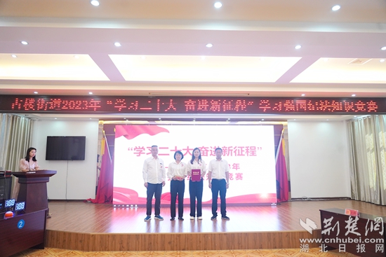 荊楚網(wǎng)(湖北日報網(wǎng))訊(通訊員丁元中)7月26日下午,鄂城區(qū)古樓街道舉辦“學(xué)習(xí)二十大,奮進新征程”學(xué)習(xí)強國紀法知識競賽。全街社區(qū)、股經(jīng)社、中心學(xué)校、市場監(jiān)管所、飛鵝衛(wèi)生服務(wù)中心、怡亭銘衛(wèi)生服務(wù)中心、街辦機關(guān)等20支代表隊60名選手參賽。
