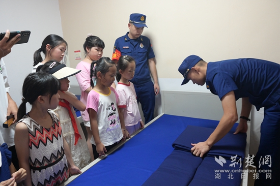 孩子們還走進了消防員的宿舍,看到疊得如同豆腐塊般的被子,大家紛紛豎起了大拇指,都被消防員高度的自律性所震撼。消防員為青少年講解了“豆腐塊”被子的疊法,大家學(xué)習(xí)熱情高漲,紛紛模仿、動手操作?!敖裉斓膮⒂^讓我感受到了消防叔叔們的勇敢和擔當。我以后也要成為一名光榮的消防員,守護大家的安全和平安?!币晃粎⒓踊顒拥男∨笥颜f道。