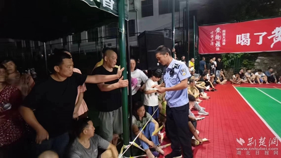 “當(dāng)今社會(huì),電信網(wǎng)絡(luò)詐騙‘花樣百出’,騙術(shù)層出不窮,不明鏈接千萬(wàn)別點(diǎn)開(kāi),小利誘惑一定要警惕……”8月13日晚,在銅鐘鄉(xiāng)“村BA”籃球賽現(xiàn)場(chǎng),銅鐘派出所民輔警利用中場(chǎng)休息時(shí)間耐心地給現(xiàn)場(chǎng)觀(guān)賽群眾講解防詐騙知識(shí)。
