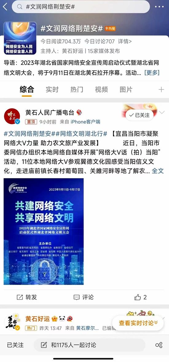 記者梳理發(fā)現(xiàn),9月10日上午,在微博平臺上,由湖北省正能量網(wǎng)絡(luò)大V“黃石好運(yùn)”發(fā)起上述討論話題。平臺數(shù)據(jù)顯示,當(dāng)天相關(guān)話題閱讀量超過4000萬人次,全省已有15家媒體平臺,包括荊楚網(wǎng)、湖北發(fā)布、長江日報(bào)、武漢發(fā)布、宜昌發(fā)布、黃石廣播電視臺等官方平臺賬號參與話題接力、轉(zhuǎn)發(fā)。不少網(wǎng)友紛紛參與評論互動。