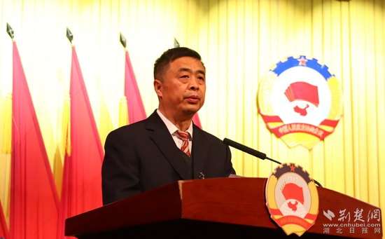 咸安區(qū)政協(xié)主席鎮(zhèn)權(quán)作工作報告。黃錚 攝