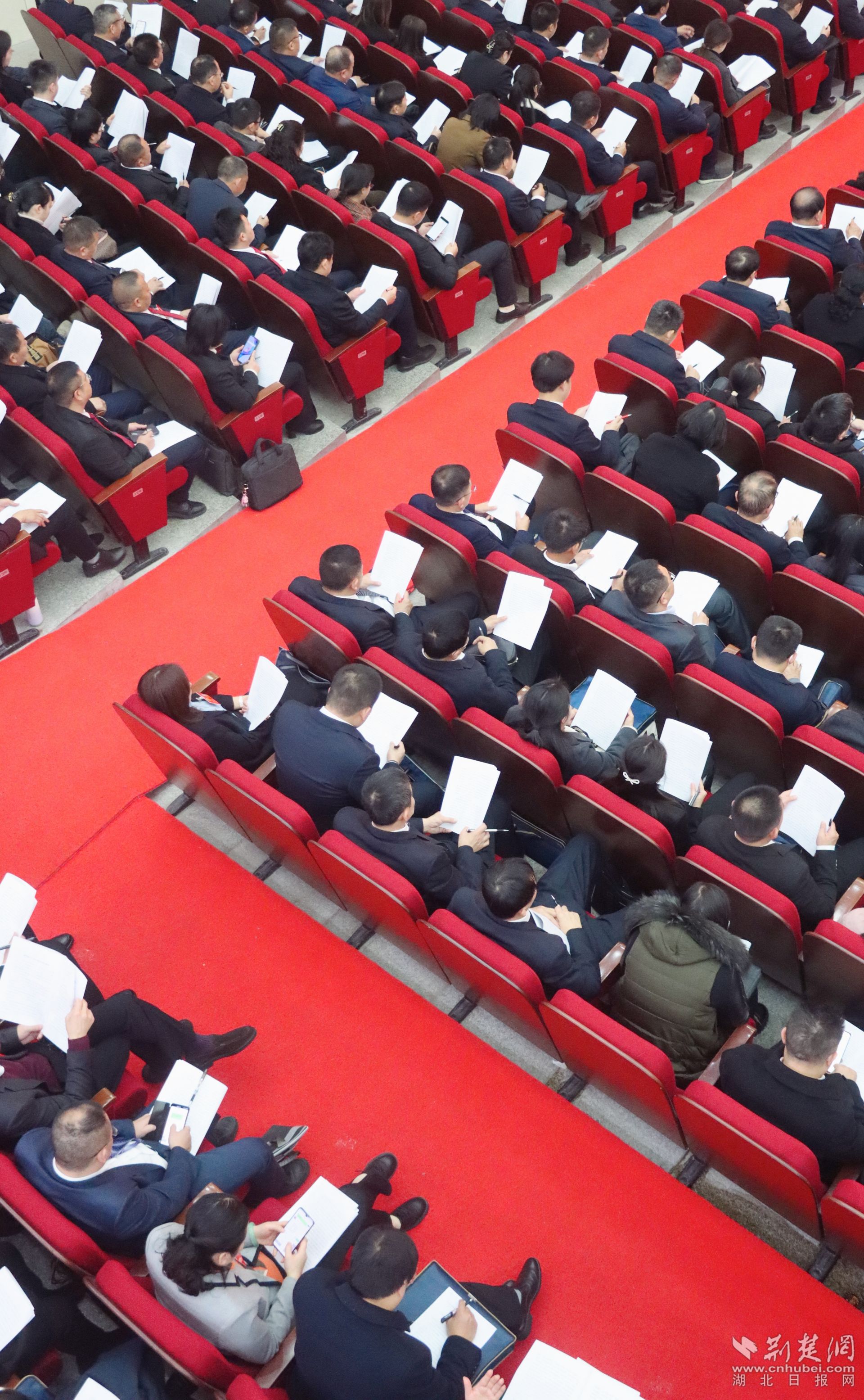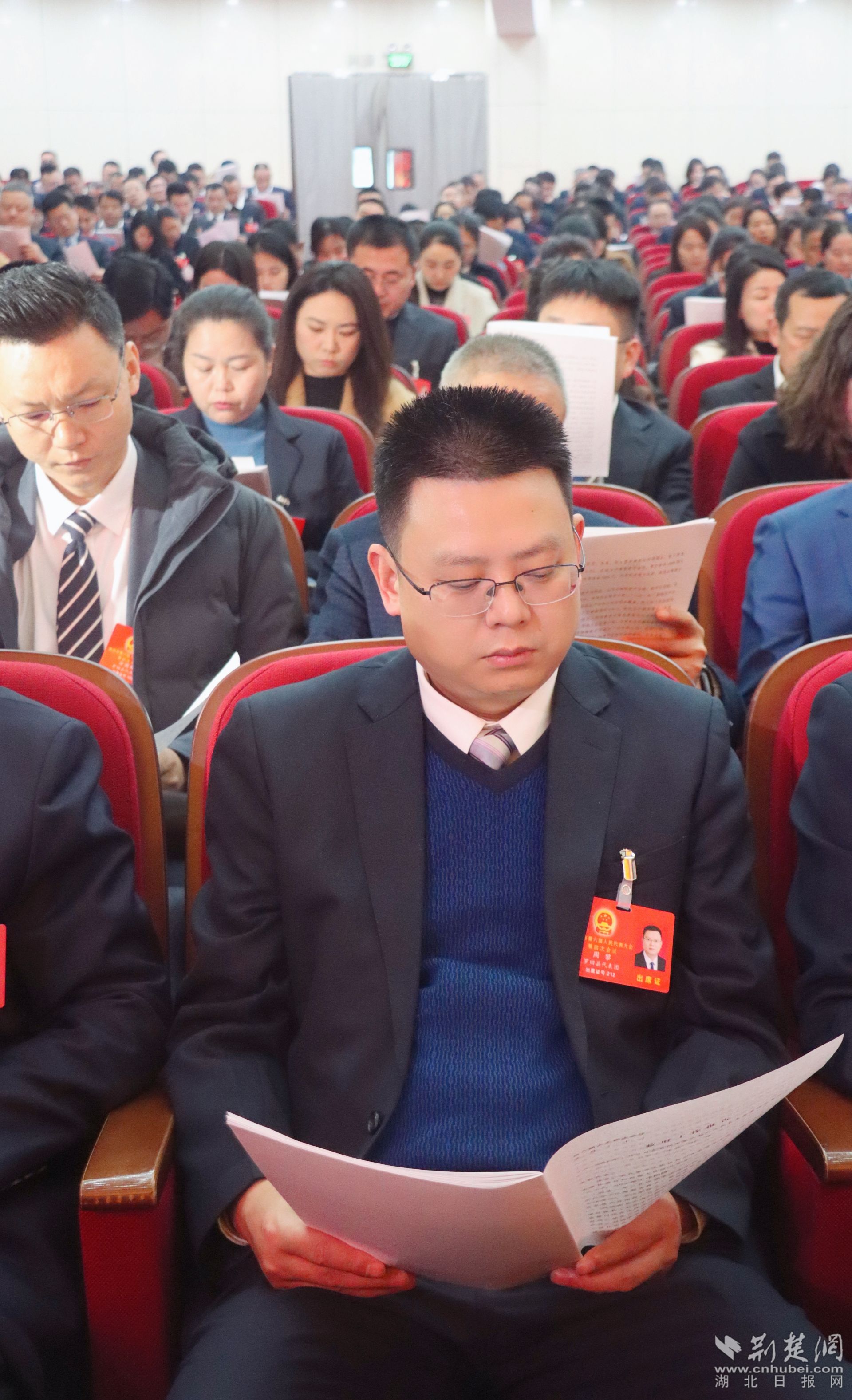 代表團(tuán)成員認(rèn)真聽取報告。胡小軍 攝