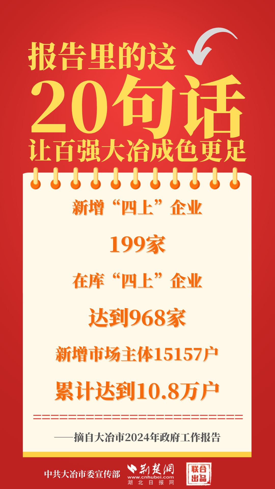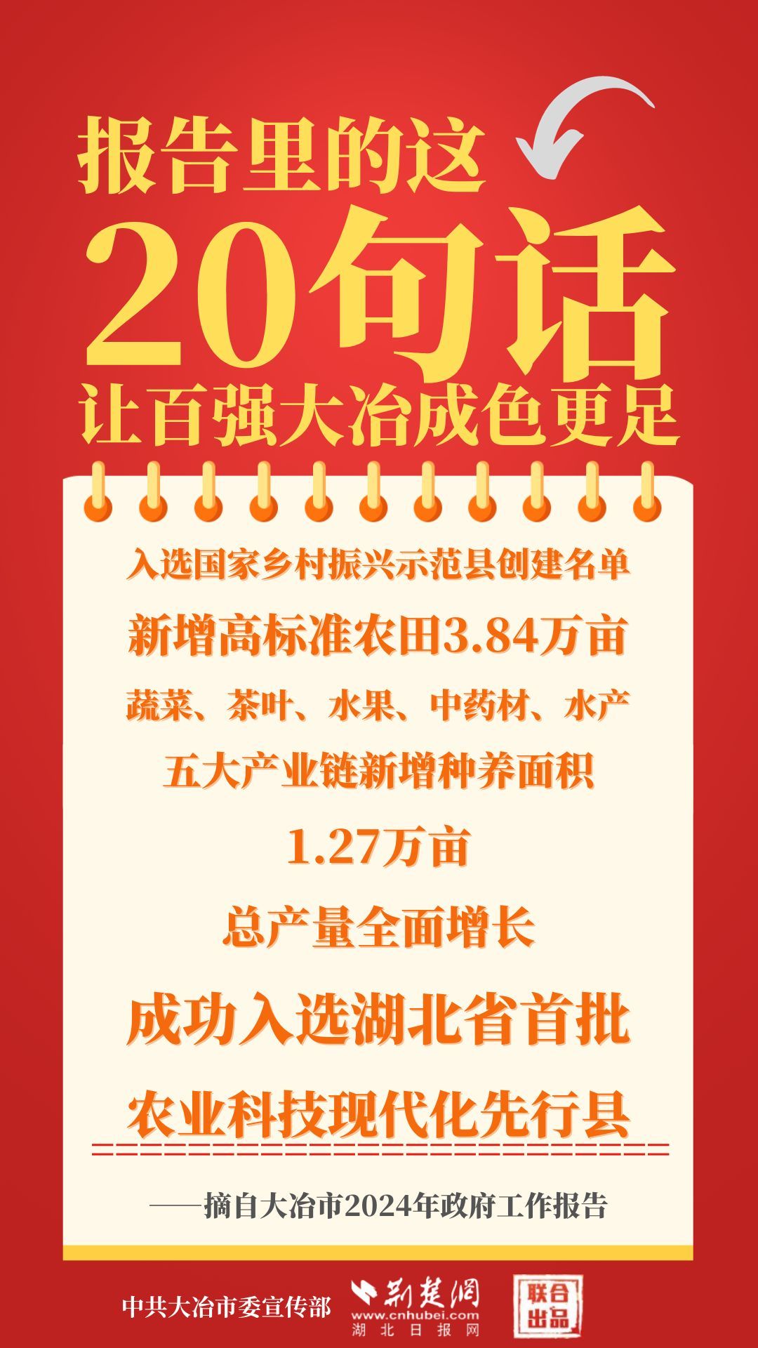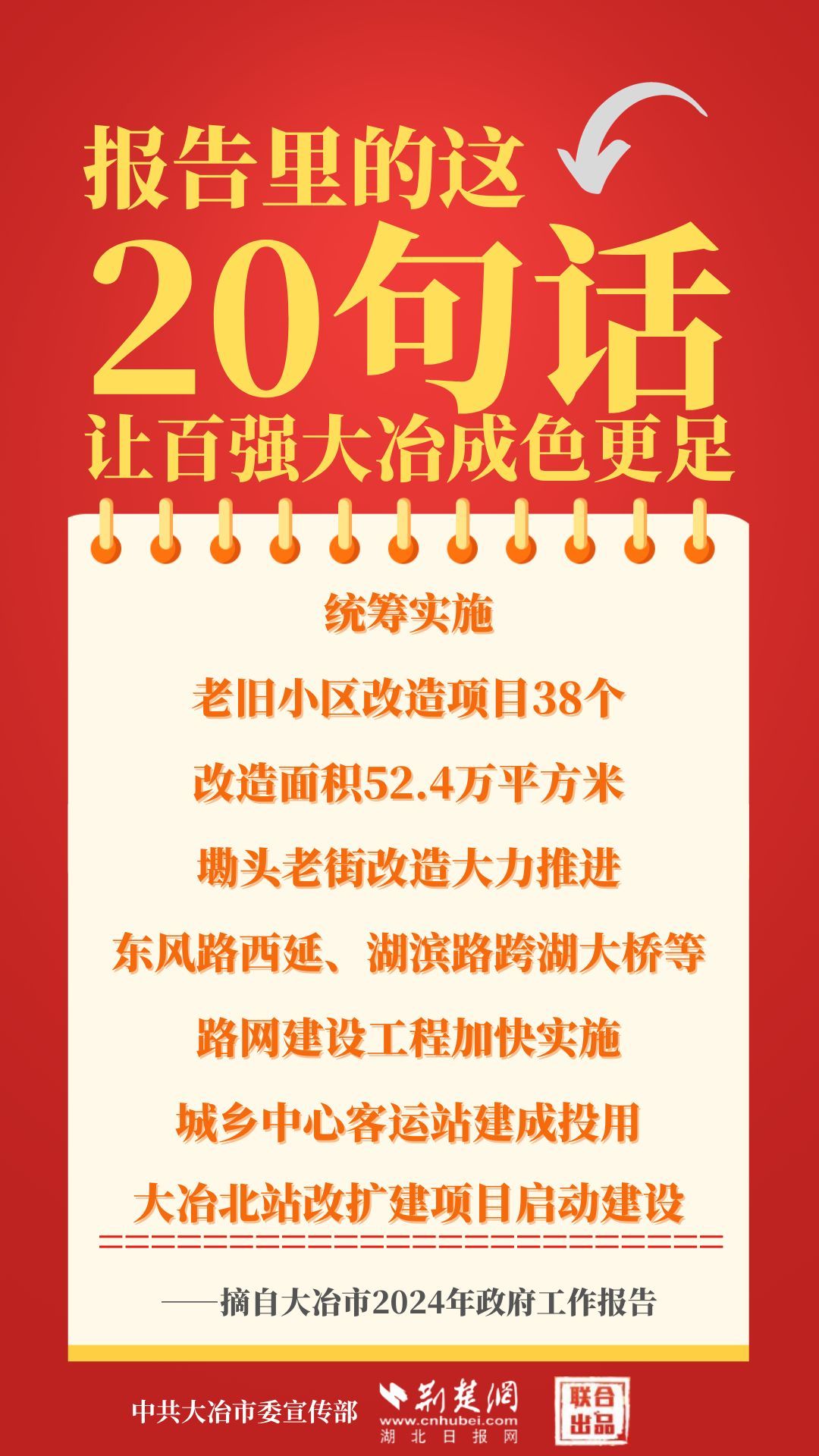 1月12日,大冶市第七屆人民代表大會第四次會議開幕,大冶市委副書記、市長孫輒作政府工作報告。報告里的這20句話,讓百強(qiáng)大冶成色更足。