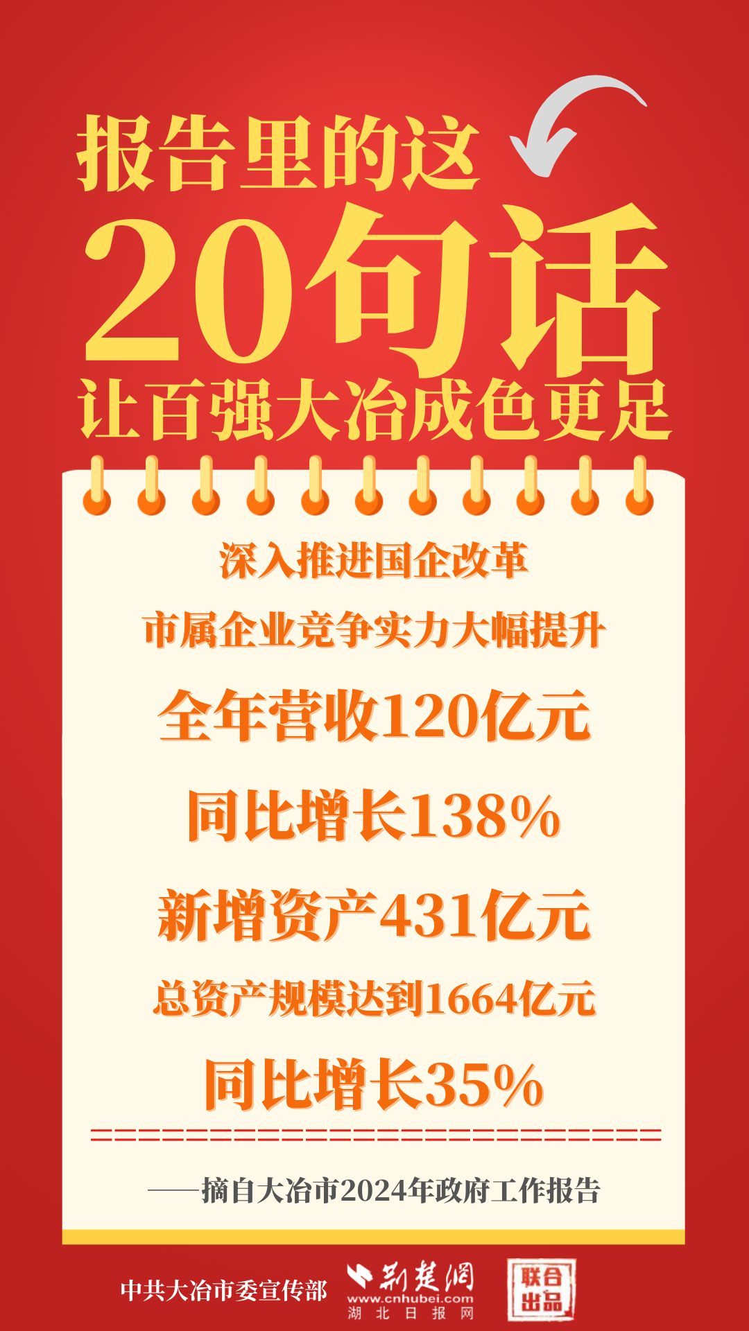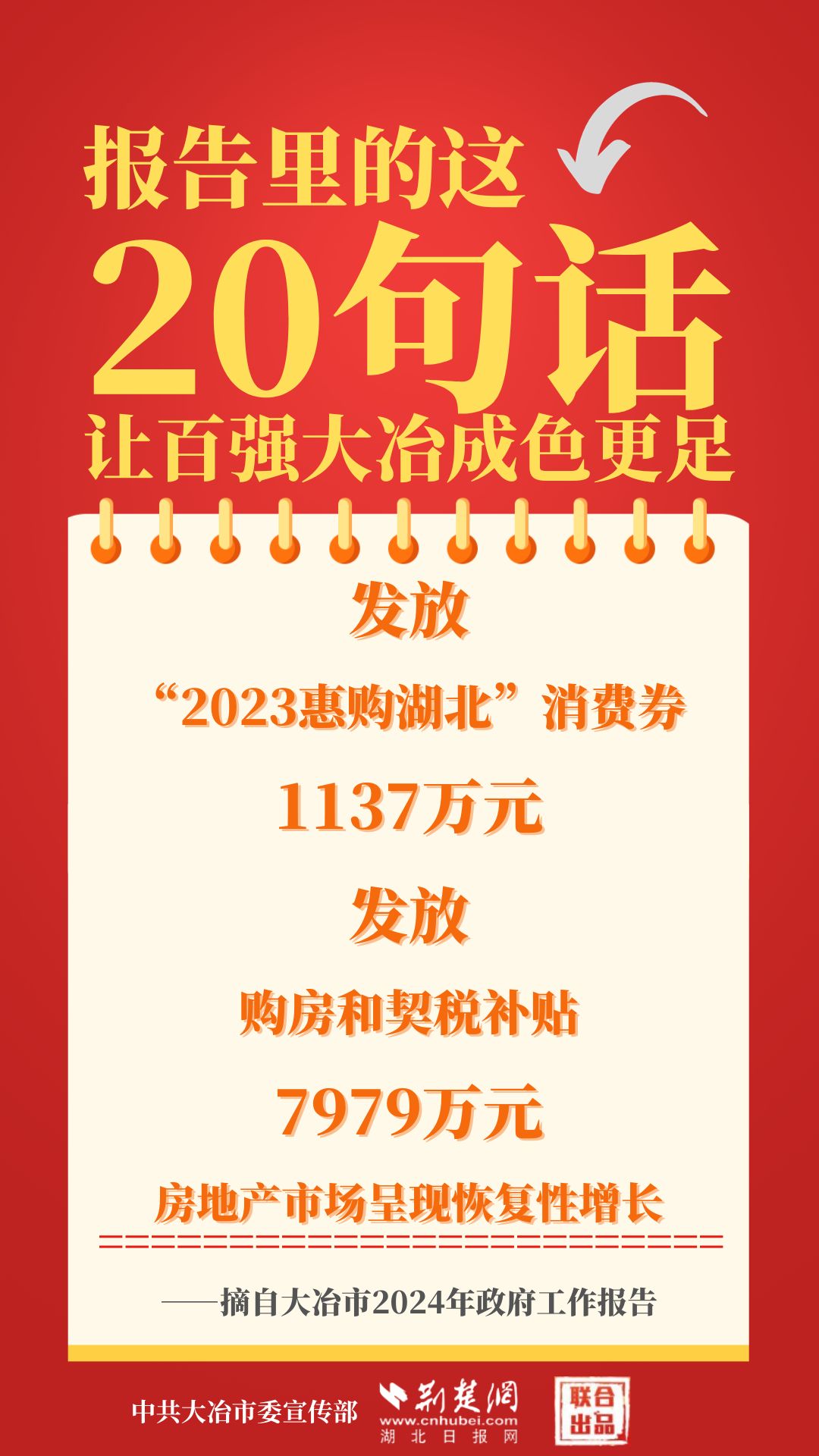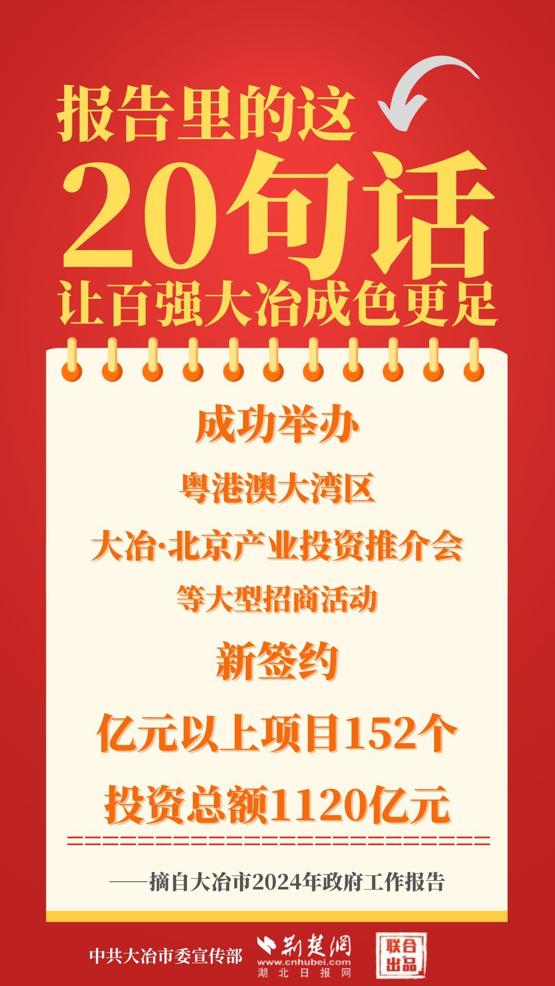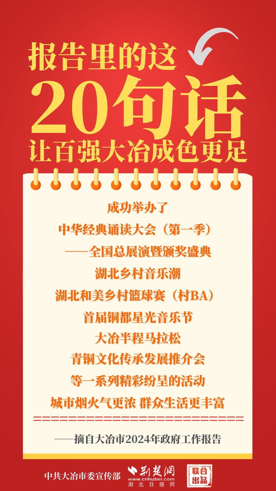1月12日,大冶市第七屆人民代表大會第四次會議開幕,大冶市委副書記、市長孫輒作政府工作報告。報告里的這20句話,讓百強(qiáng)大冶成色更足。