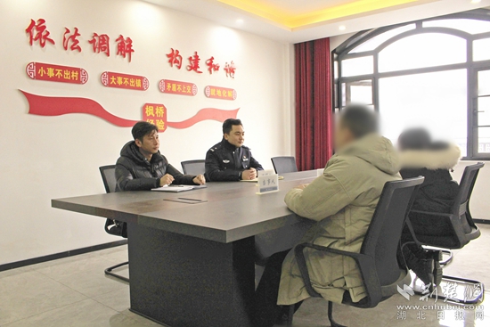 “大家都是鄰居,快過年了,希望大家能夠以和為貴、相互理解……”早上八點(diǎn)半,剛進(jìn)門,就看到所長丁建勛在給群眾做調(diào)解。