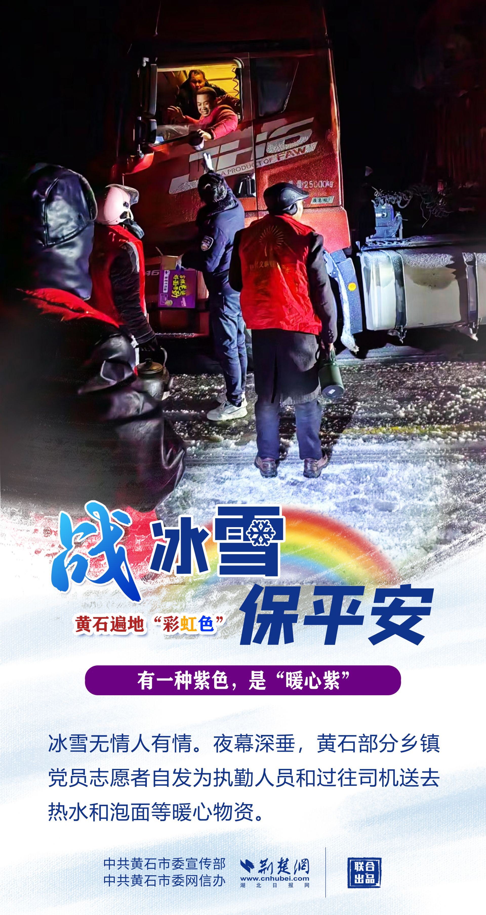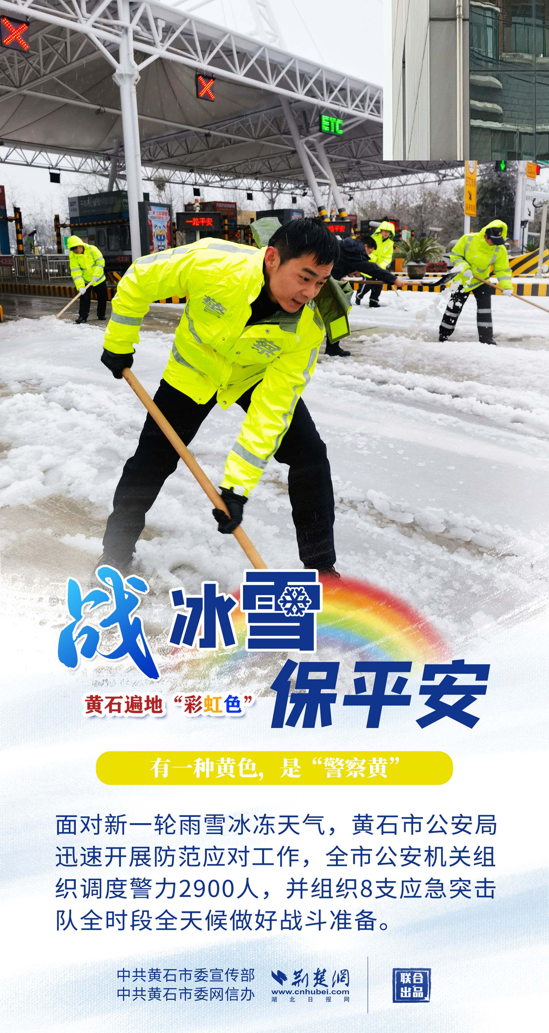 志愿紅、應(yīng)急橙、警察黃、郵政綠……黃石各地、各部門以雪為令,迎風(fēng)戰(zhàn)雪,市縣兩級(jí)2.4萬下沉黨員干部迅速到位,各項(xiàng)工作快速有序鋪開,全力保障人民群眾生命財(cái)產(chǎn)安全,最大限度減輕冰雪帶來的影響。