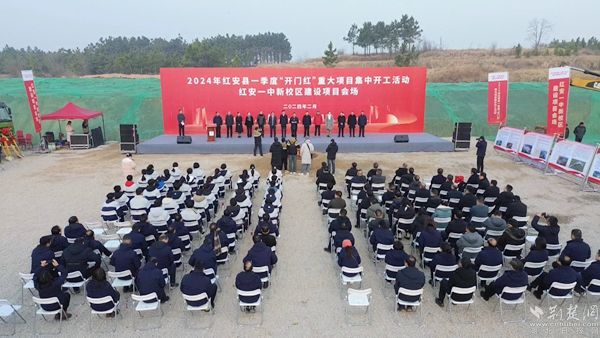 龍騰虎躍迎盛世,將軍故里喜事多。當(dāng)天,紅安一中新校區(qū)建設(shè)項(xiàng)目、陜西國(guó)力信達(dá)康養(yǎng)項(xiàng)目、中農(nóng)聯(lián)·紅安國(guó)際農(nóng)商城、滬蓉高速紅安聯(lián)絡(luò)線城區(qū)出口連接線等12個(gè)項(xiàng)目現(xiàn)場(chǎng)熱鬧非凡,正在同時(shí)舉行紅安縣一季度“開(kāi)門(mén)紅”重大項(xiàng)目集中開(kāi)工儀式,吹響“開(kāi)年即開(kāi)工、起步即沖刺”的沖鋒號(hào)角,以賽龍奪錦之勢(shì)奮戰(zhàn)一季度“開(kāi)門(mén)紅”。