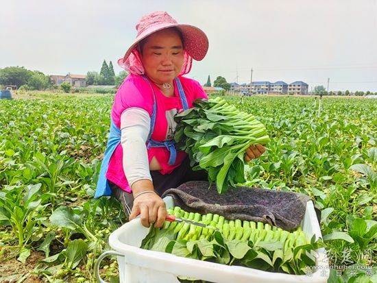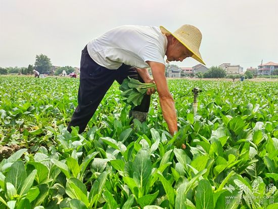 在黃梅縣分路鎮(zhèn)鼎旺農(nóng)業(yè)農(nóng)民專業(yè)合作社廣東菜心種植基地,近100名割菜工手戴指甲刀,在技術(shù)顧問呂美標(biāo)的指揮下,分散到各個地塊,不一會兒,路兩旁就整齊堆滿了菜心,合作社社長石成旺拿出手機聯(lián)系車輛,經(jīng)過整理、清洗,剛收割的菜心就被送到凍庫,準(zhǔn)備第二天運往國內(nèi)外。