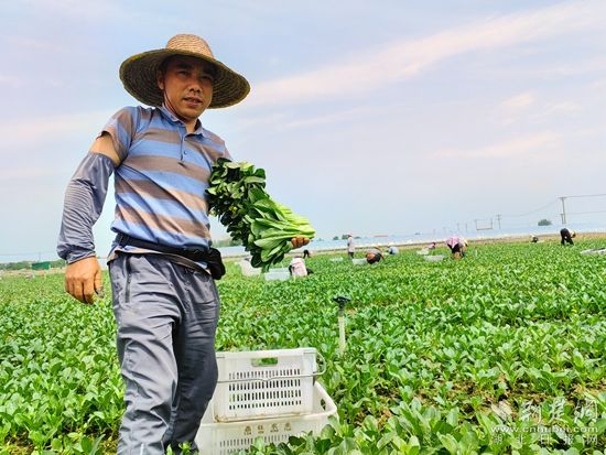 在呂美標(biāo)精心的打理下,種植基地的廣東菜心長勢喜人。