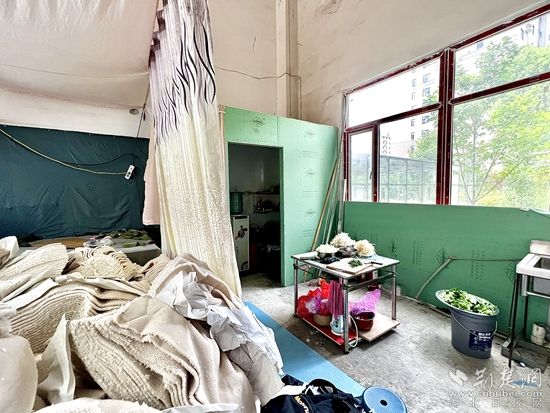 不僅如此,在大約50平方米的空間里,混亂擺放著十幾臺(tái)服裝加工機(jī)器,加工設(shè)備旁還放置著燃?xì)庠?、廚具等一應(yīng)俱全的做飯工具,且未進(jìn)行有效防火分隔。用來(lái)“保命”的室內(nèi)消防栓,也被用作置物臺(tái)放置各種雜物。