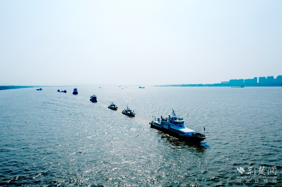 當(dāng)天上午9時(shí)許,各船艇嚴(yán)陣以待,海事旗迎風(fēng)招展,觀禮臺(tái)人頭攢動(dòng)……隨著總指揮一聲令下,指揮艇聲號(hào)長鳴,演習(xí)正式開始。