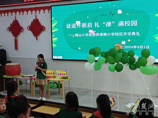 湖山小學(xué)教聯(lián)體章畈小學(xué)校區(qū),師生們齊聚學(xué)校報告廳,舉行“征途開新啟,禮“律”滿校園”為主題的開學(xué)典禮。