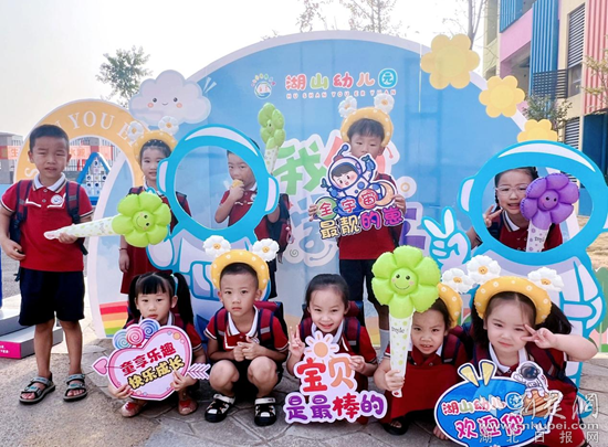 大王百花八祥幼兒園里,園長媽媽和老師們在門口熱情地迎接每一位小朋友的到來,為孩子們送上新學(xué)期的第一份祝福。