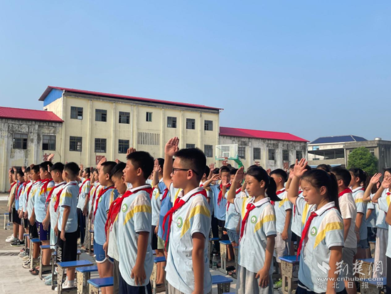 在新學(xué)期的第一次升旗儀式上,太子鎮(zhèn)向前小學(xué)全體師生齊聚操場,面向國旗莊嚴(yán)地行注目禮。隨后,各班主任組織學(xué)生開展“開學(xué)安全第一課”主題班會。