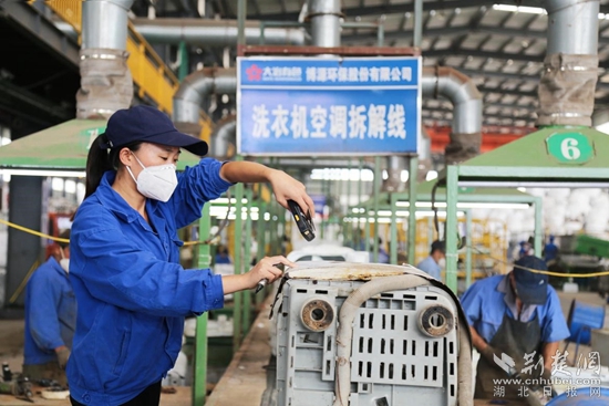 劉國平介紹,今年1至7月份,包括電視、冰箱、洗衣機、空調(diào)和電腦在內(nèi)的“四機一腦”共拆解57.85萬套,廢舊汽車回收拆解509臺,小家電拆解6283噸。去年,企業(yè)拆解舊家電超過100萬臺,產(chǎn)出金屬銅3000噸,“相當于中色大冶的第五座礦山”。