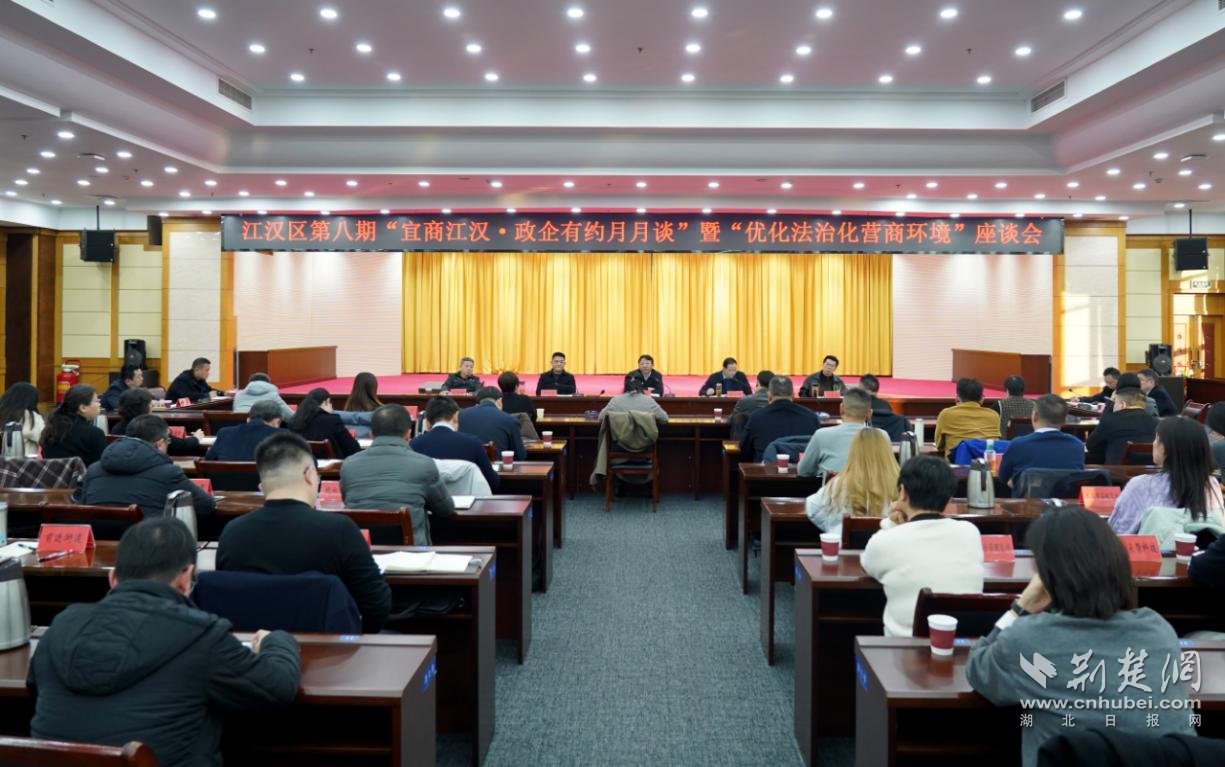 荊楚網(wǎng)(湖北日報網(wǎng))訊(記者 何婧 通訊員 蔡宇欣)12月17日,江漢區(qū)舉辦第八期“宜商江漢·政企有約月月談”暨“優(yōu)化法治化營商環(huán)境”座談會。區(qū)直部門、各街道主要負(fù)責(zé)人及商協(xié)會、民營企業(yè)代表等共同參與。