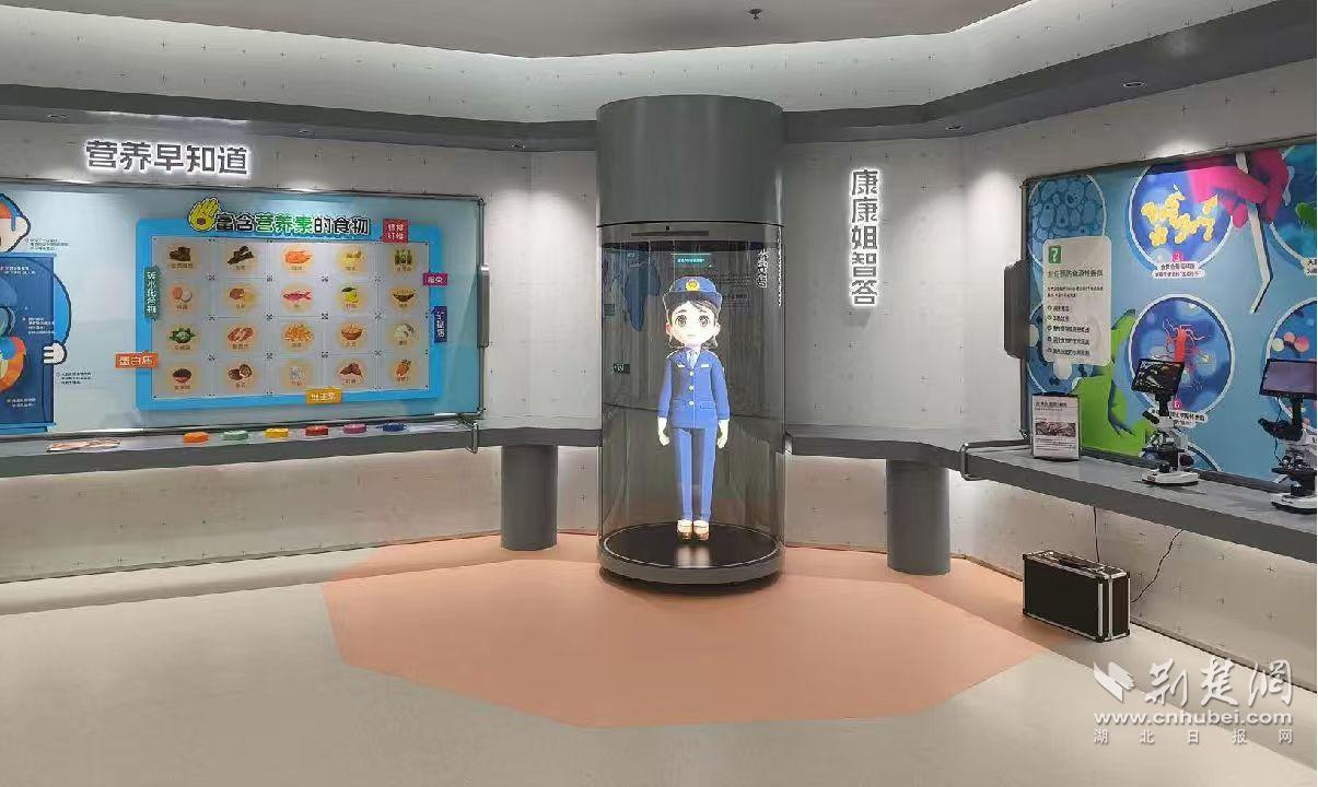 “康康姐”AI數(shù)字人是以武漢市市場監(jiān)管局的卡通代言人“康康姐”為原型設(shè)計,參觀者不但可以向她提出有關(guān)食品生產(chǎn)、經(jīng)營方面的問題,也可以探索食品世界的知識、破解食品安全謠言。