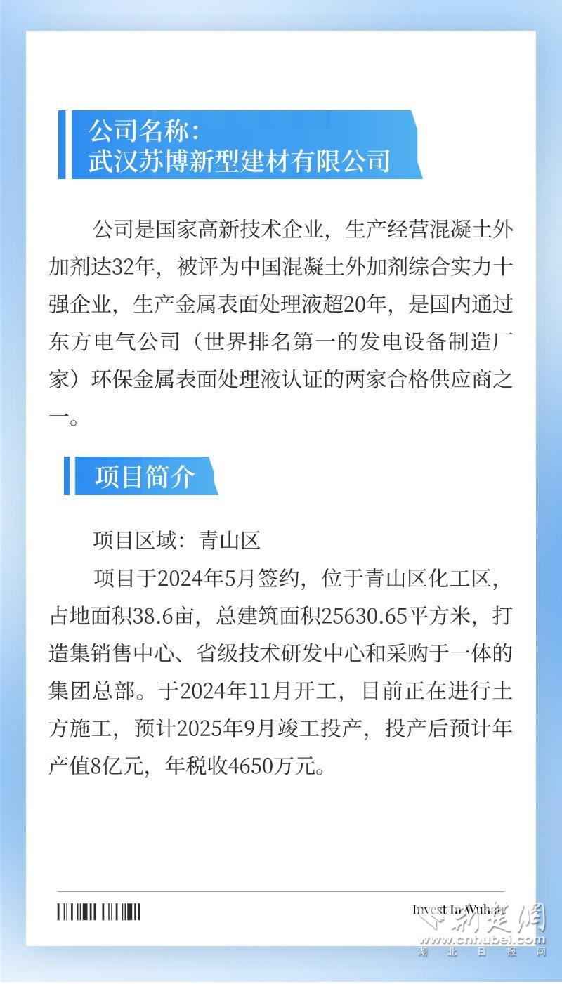 武漢蘇博新材高性能混凝土外加劑及環(huán)保金屬表面處理液生產(chǎn)建設(shè)項目