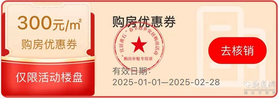 值得注意的是,此次專場活動的“購房優(yōu)惠券”僅限在參與本次專場“大優(yōu)惠”活動的房地產(chǎn)項目房源中使用,不能同時參與“一口價”優(yōu)惠活動。“購房優(yōu)惠券”僅限在2025年1月1日至2月28日期間使用,逾期未使用則自動失效。