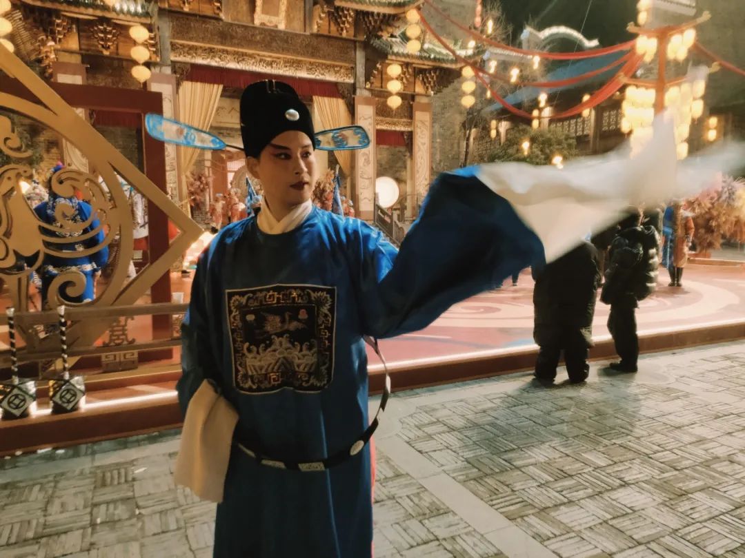2025年央視春晚武漢分會場融匯了京、楚、漢三劇的新派戲曲表演,其中,黃陂區(qū)楚劇團優(yōu)秀青年演員杜飛身著藍色官衣,頭戴“紗帽”,現(xiàn)場展示“帽翅功”,向全國觀眾展示傳統(tǒng)戲曲文化藝術的魅力。