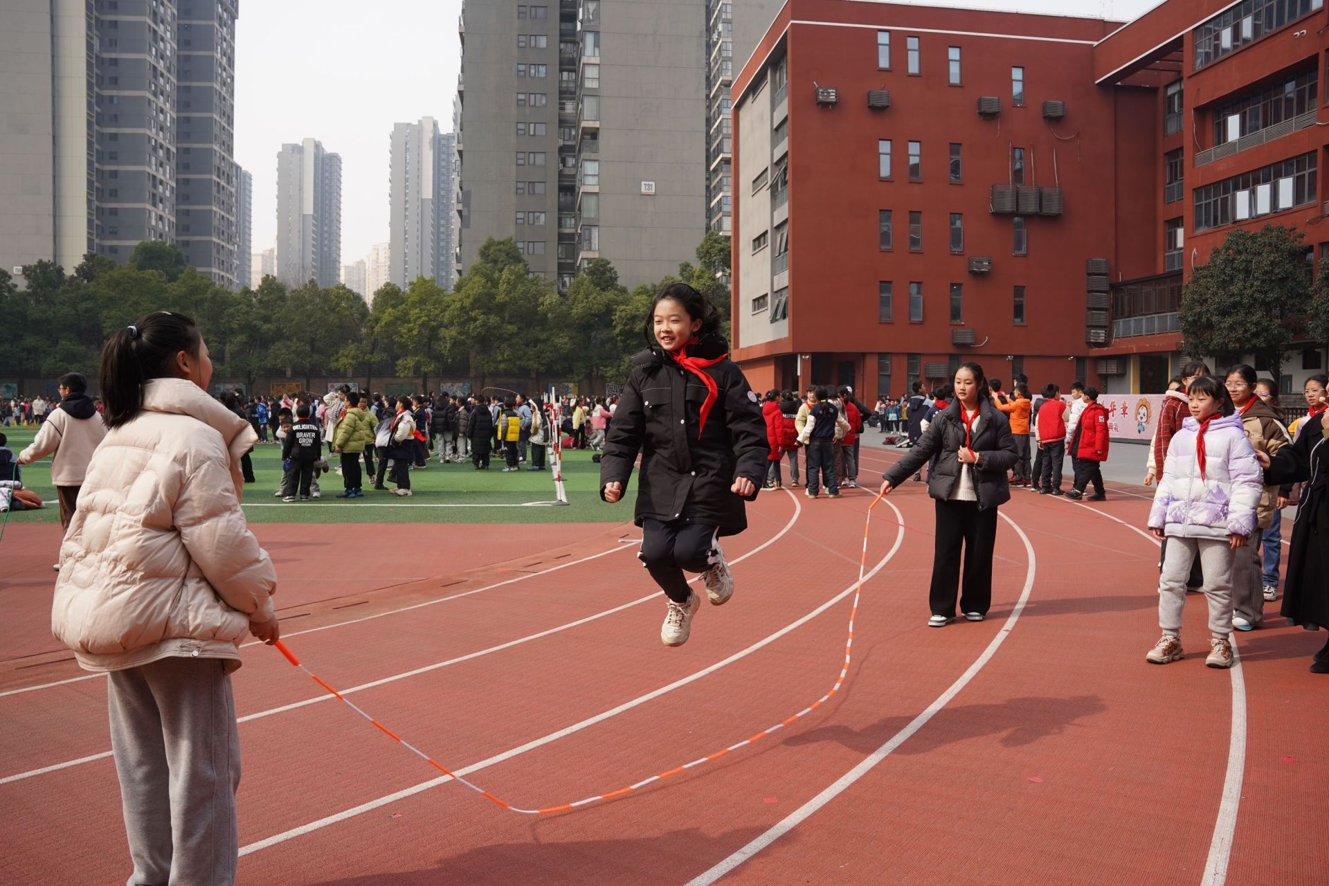 東湖實(shí)驗(yàn)學(xué)校大課間,學(xué)生正在跳繩。張媛 攝
