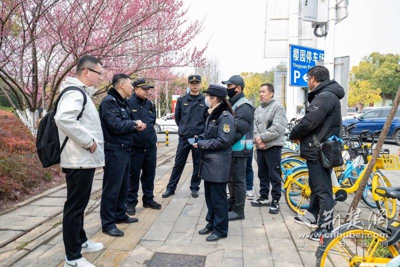 為了營造良好的賞櫻環(huán)境,更好服務(wù)市民游客,東湖風(fēng)景區(qū)聚焦櫻園游客體驗(yàn)和交通痛點(diǎn)問題,多次開展現(xiàn)場“馬路辦公”,圍繞訪梅路、植物園路、梅園東停車場周邊環(huán)境、交通秩序、共享單車等問題“問診開藥”,聯(lián)動(dòng)開展集中整治。