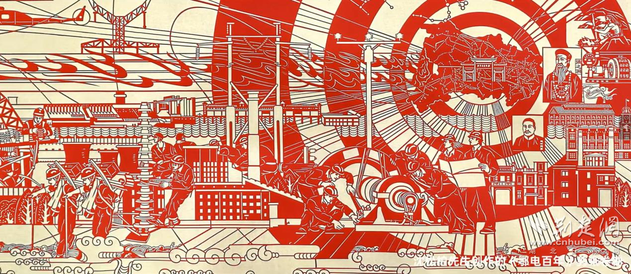 2023年,沈松柏在傳統(tǒng)剪紙手法“金紙刻制、彩紙襯色”的基礎上,通過更為精細的雕刻,創(chuàng)作出展現(xiàn)湖北電力百年發(fā)展歷程的剪紙長卷《百年鄂電 光耀荊楚》。從1893年湖北點亮的第一盞電燈到三峽水電站的建設,從特高壓變電站到新型電力系統(tǒng)建設,都在這幅6.3米的剪紙長卷上鋪陳開來。“作為一名電網(wǎng)企業(yè)員工,通過剪紙這個載體,來表現(xiàn)電力發(fā)展、綠色電力建設一百年,我覺得非常光榮、非常自豪?!?025年,沈松柏憑借在剪紙藝術領域的深厚造詣與長期以來的突出貢獻,入選“鄂電銀輝”首批文化先鋒類人才。沈松柏表示,以刀為筆雕刻時代風貌,是非遺傳承人的使命,也是驕傲。