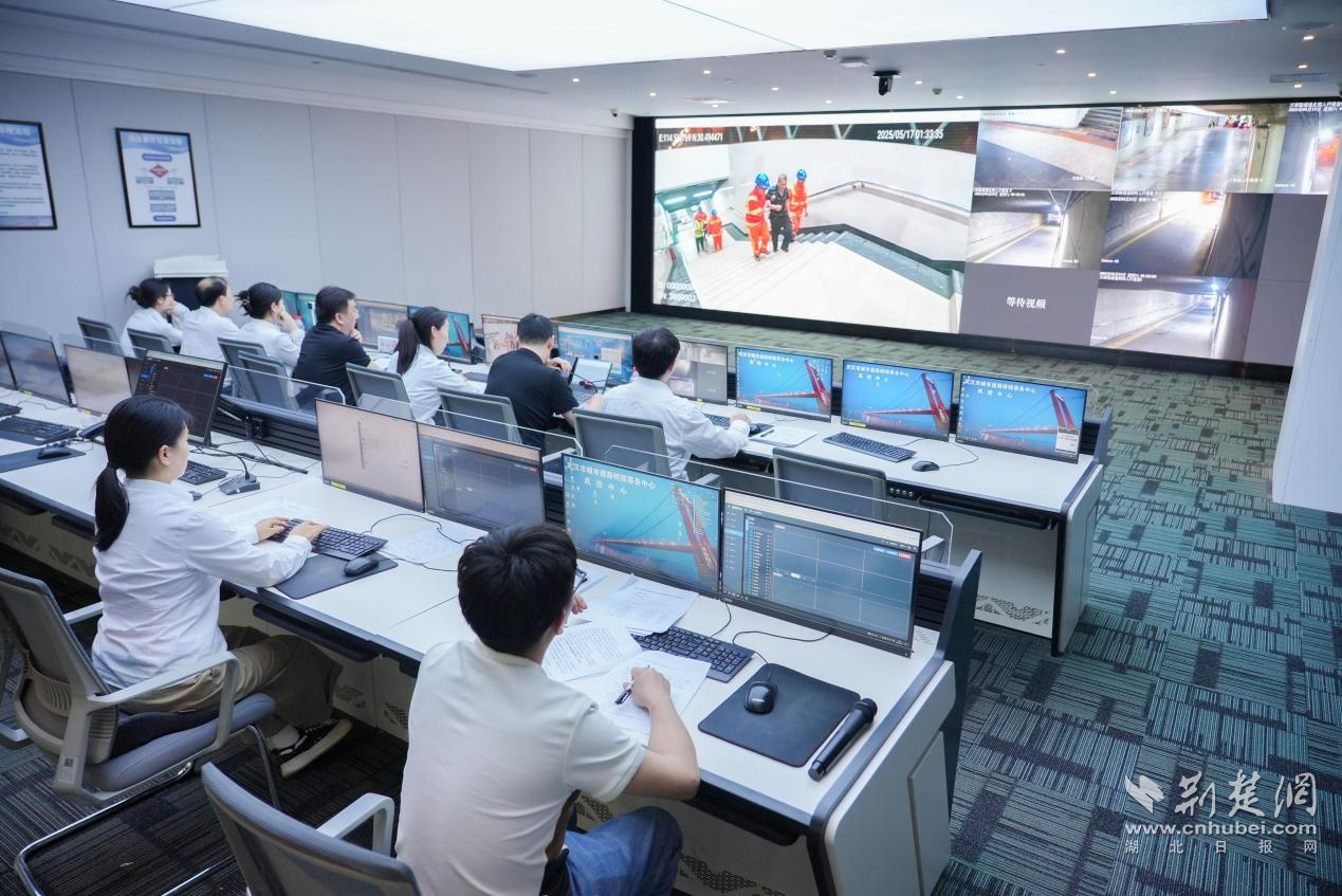 演練模擬了進(jìn)入5月以來,武漢連續(xù)遭遇強(qiáng)降雨,江河湖泊水位上漲,部分城市橋梁橋面、隧道及通道出現(xiàn)積水、倒灌和群眾被困等緊急情況,指揮中樞設(shè)在武漢市城市道路橋隧事務(wù)中心風(fēng)控中心。