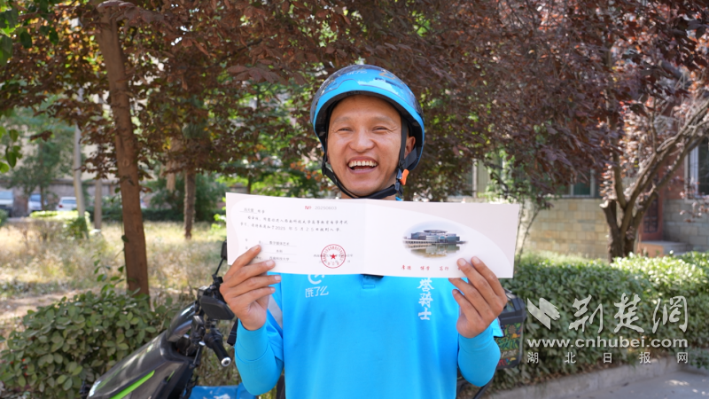 荊楚網(湖北日報網)訊(通訊員 易曄)“很多人會覺得,39歲再去讀大學可能有點晚了,但對我來說,現在一切都剛剛好,我期待穿上學士服的那天?!?月21日,餓了么藍騎士馮天雷正準備結束一天跑單任務時,收到了一則包裹抵達提醒,是來自西南科技大學數字傳媒藝術專業(yè)的錄取通知書。
