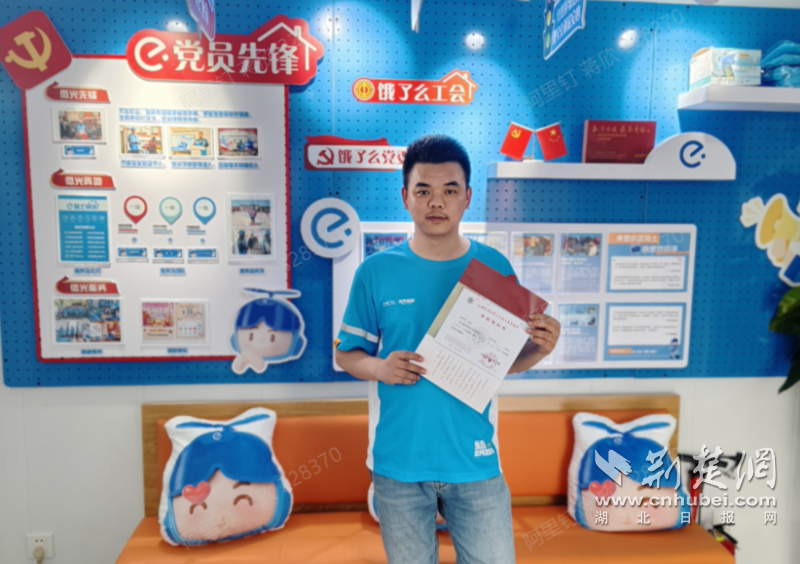餓了么上海藍騎士程永亮收到大學的錄取通知書。通訊員供圖